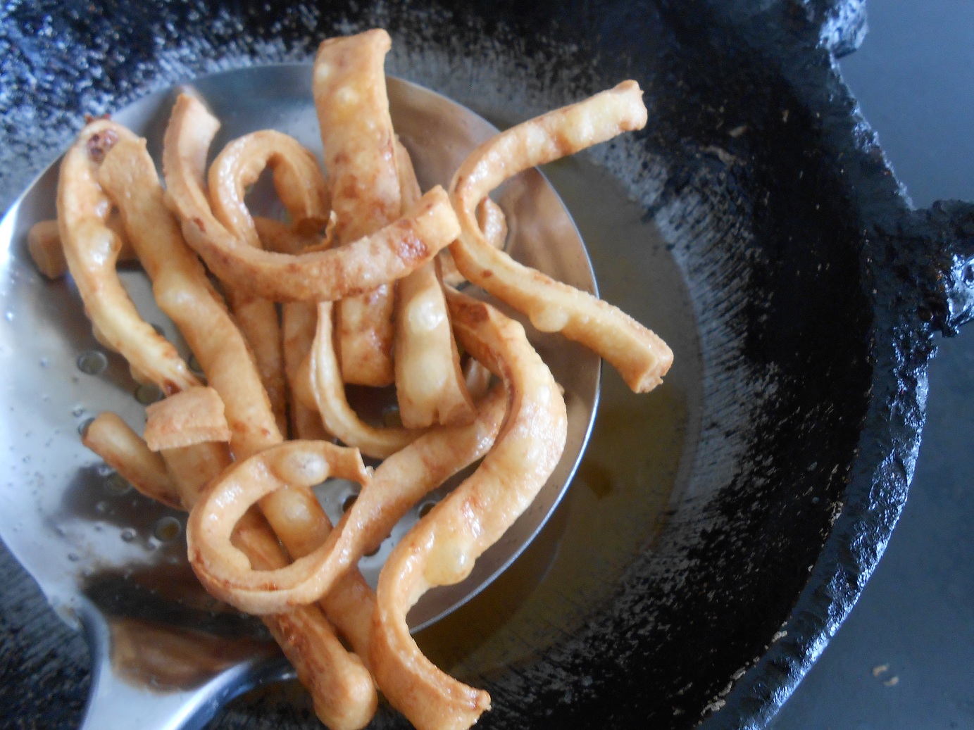 They are deep fried they are very crispy and flaky